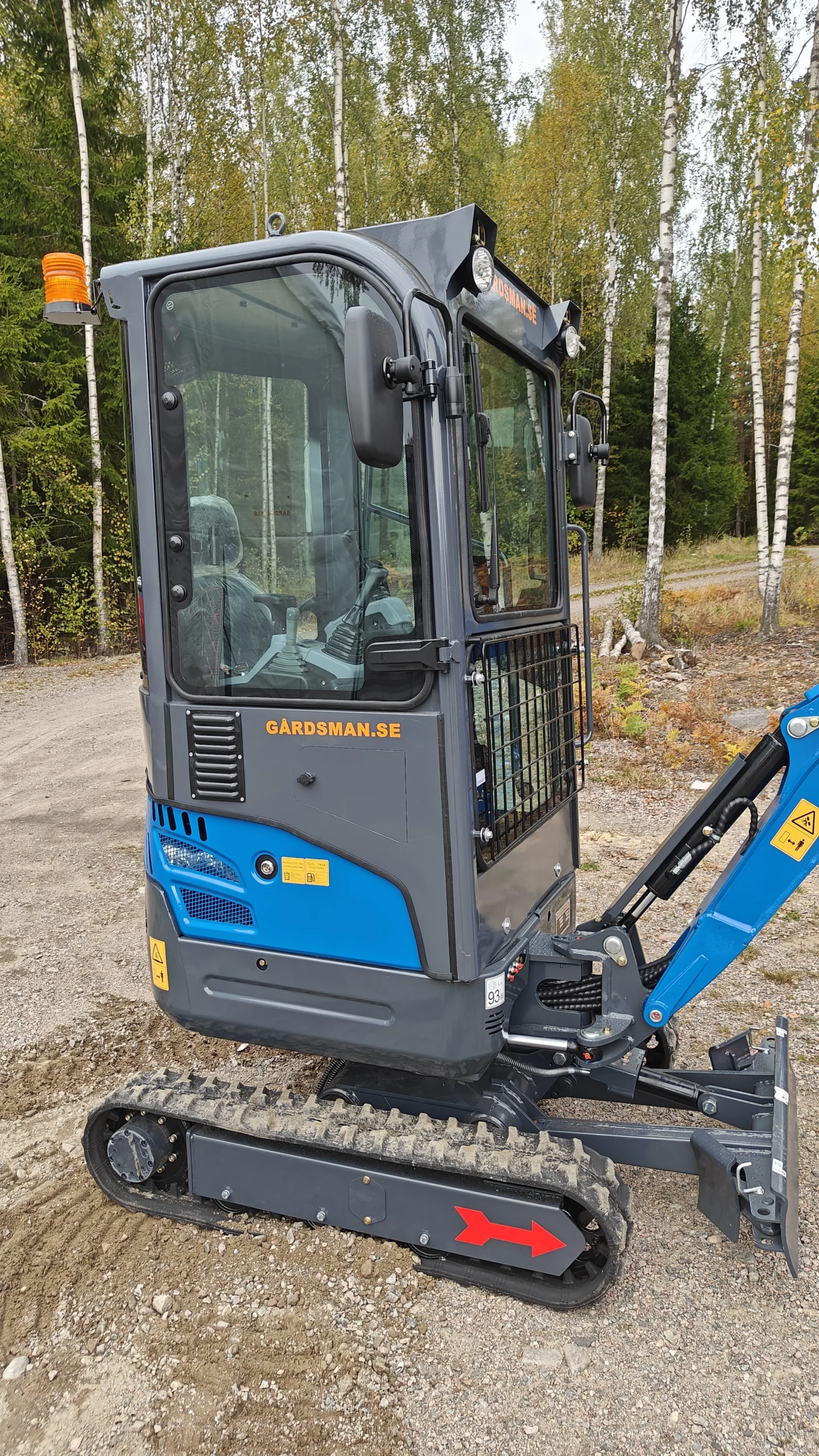 Produktbeskrivning minigrävare 1800 kg med hytt.