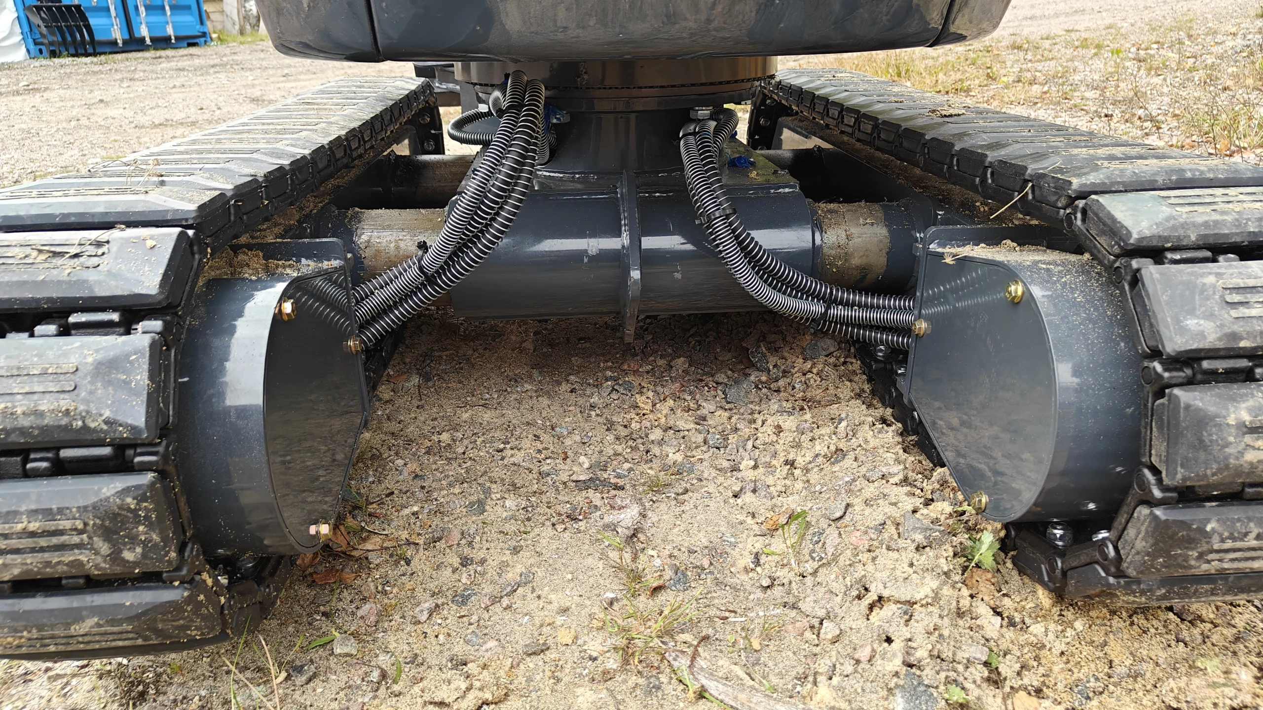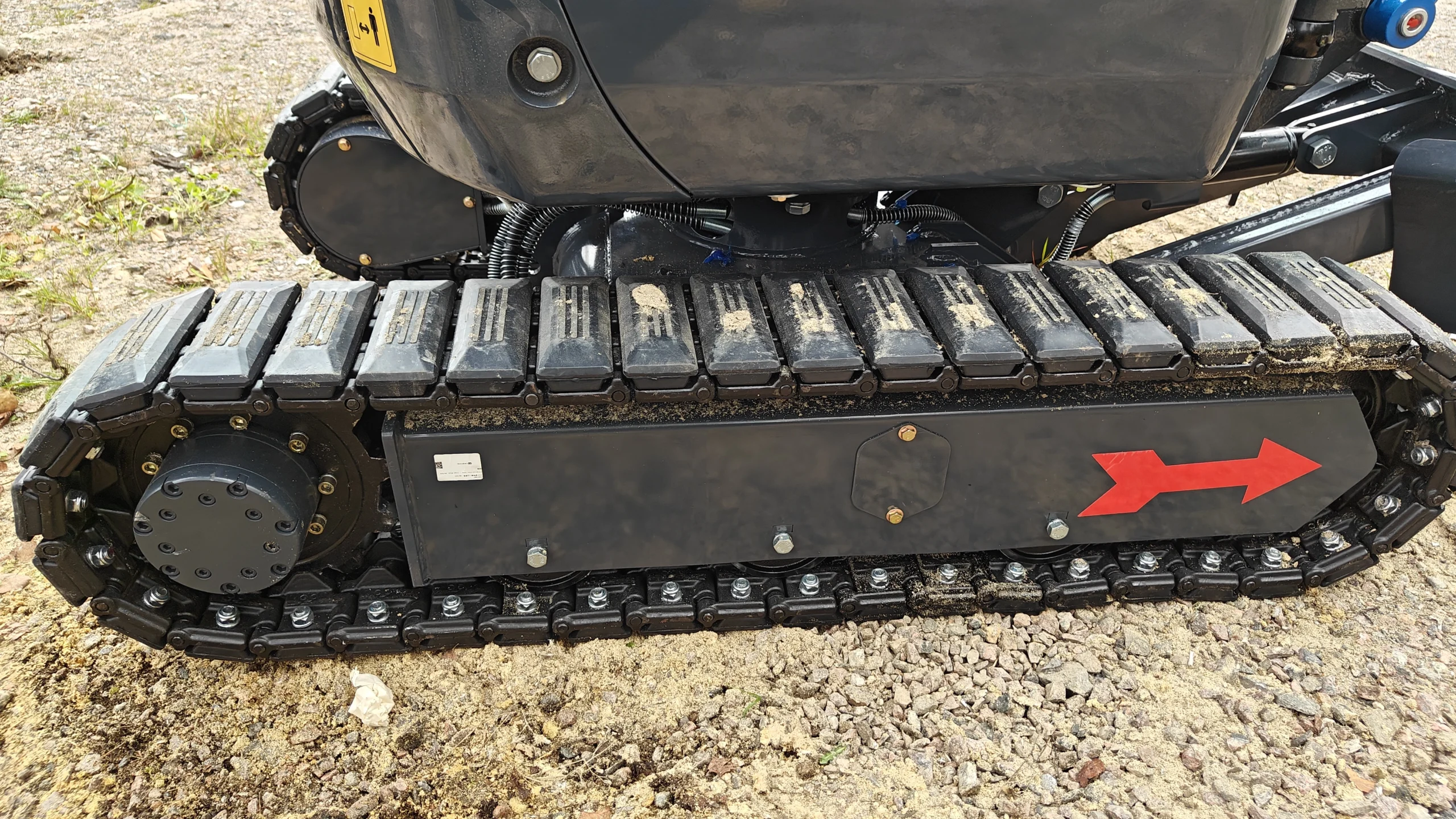 Den förhållandevis låga vikten på minigrävaren i kombination med att den har larvband av gummi gör att den är väldigt skonsam mot underlag och gräsmatta när du förflyttar den.